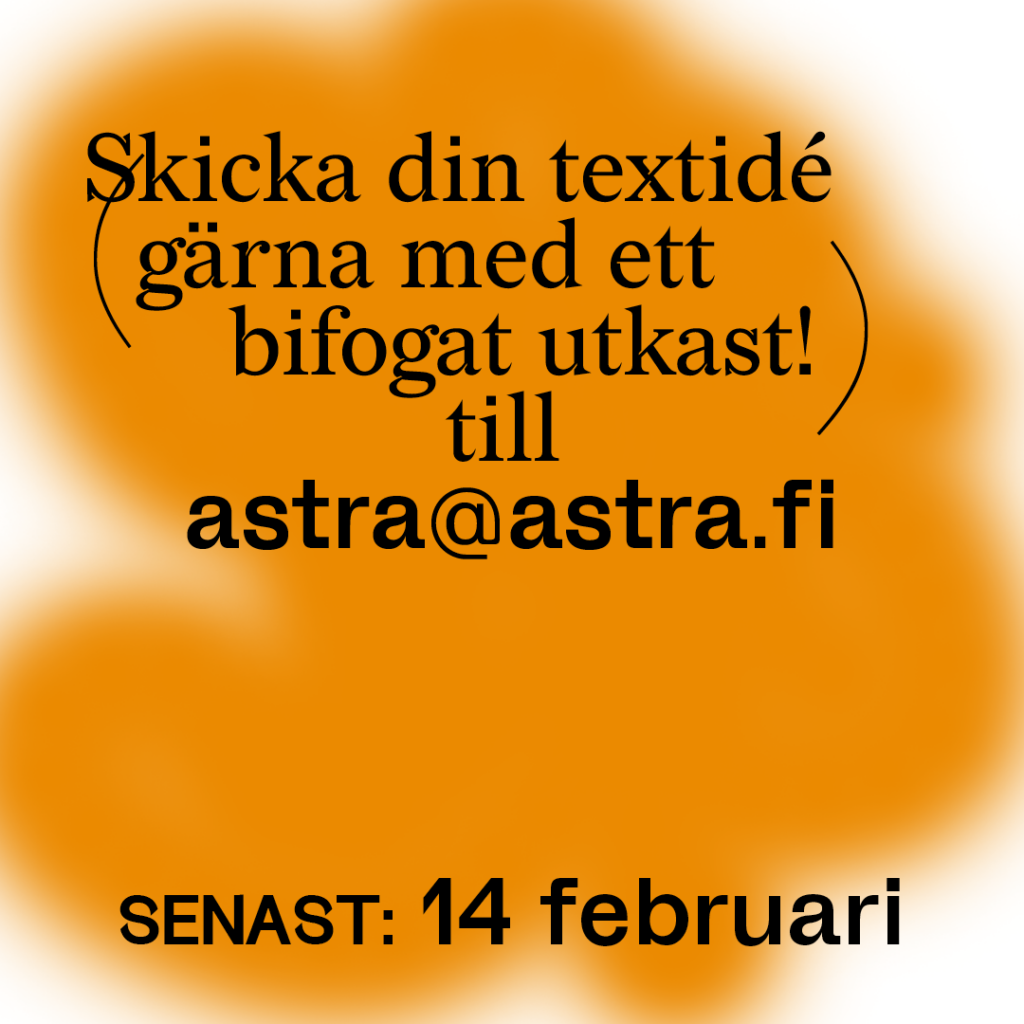 ~ Utkast och idéer skickas till astra@astra.formas.fi senast den 14 februari.