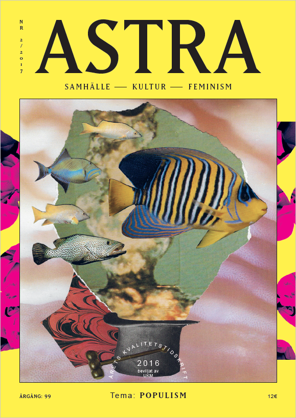 Det nyaste numret av Astra har temat populism. I numret tar vi oss an feministiska frågor kring bland annat Brexit, europeisk anti-feminism, vad populism egentligen är och hur feministisk populism kan se ut.