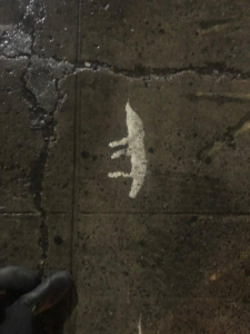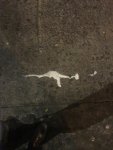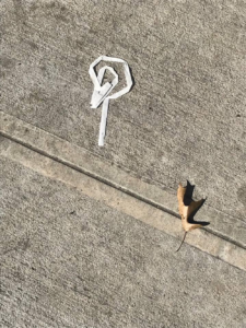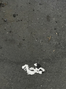 Trottoaren i New York är sällan en jämn betongmatta. Manhattans linjerade gator är belagda med stora skrovliga betongblock vars kanter blivit mörbultade av tjälen. De har sänkts och höjts under åren och formar numera en ojämn och vågig yta. Pinsamt ofta påminde den vågiga och oförutsägbara ytan mig om min dåliga vana att kolla på telefonen medan jag gick. Jag försökte undvika att ragla och falla genom att koncentrera mig på att följa stenläggningen med blicken. Med blicken riktad nedåt hittade fantasin snart gråa savanner, vars pölsjöar, pappmuggsplatåberg och glänsande omslagsbanker fraktaliskt upprepade naturens geografiska strukturer. Jag började slumpmässigt stöta på olika djur, formade av skräpet på marken. Djuren av sugrör, näsduksbitar, plaster och färgfläckar blev en ny bottennivå i min stad.